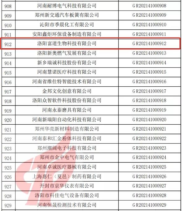 11月24日,全国高新技术企业认定管理工作领导小组办公室公布了《河南省2021年第一批备案高新技术企业名单》,洛阳富道生物科技有限公司名列其中,这标志着公司正式迈入国家高新技术企业行列。