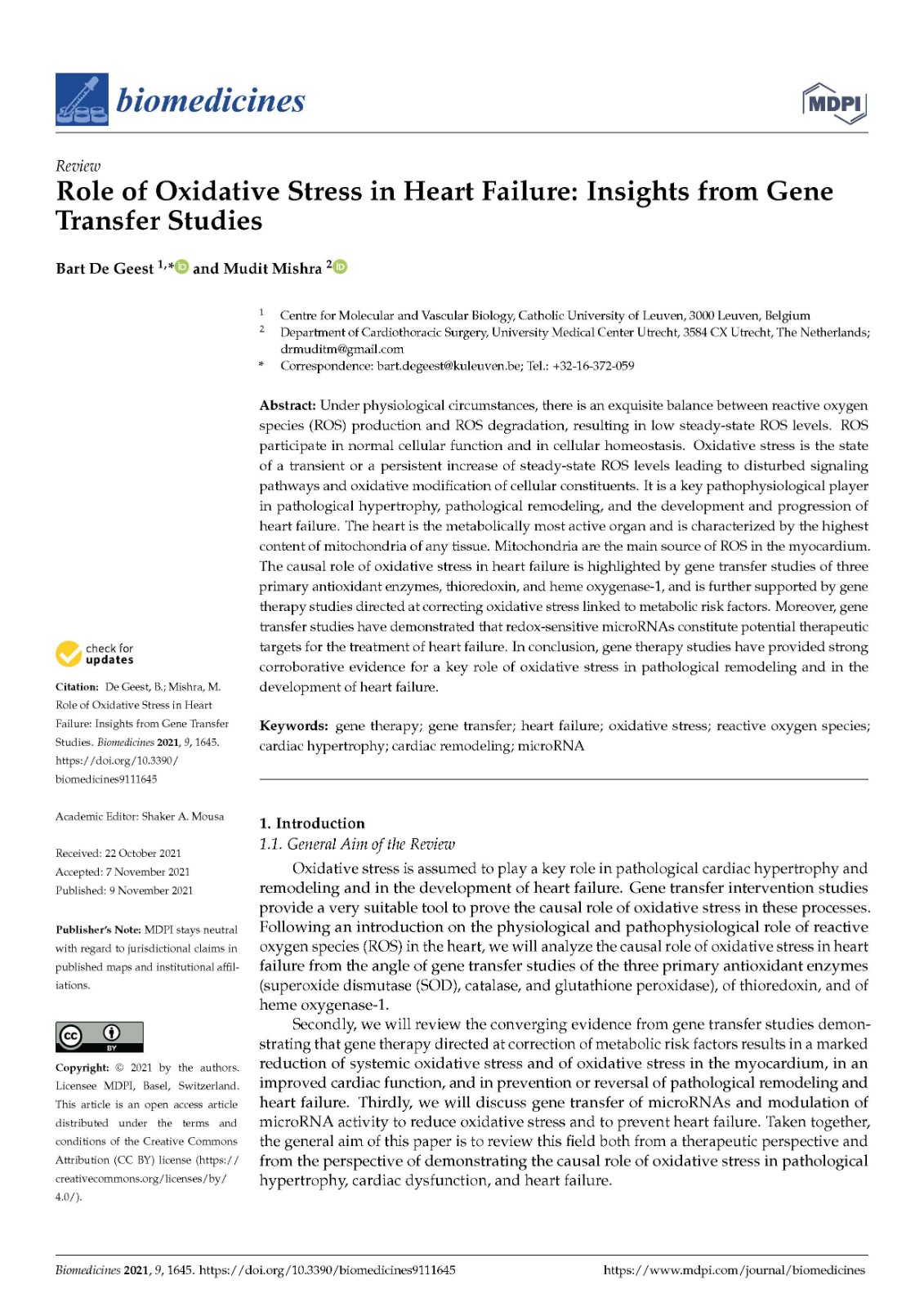 关键词:gene therapy; gene transfer; heart failure; oxidative stress; reactive oxygen species; cardiac hypertrophy; cardiac remodeling; microRNA