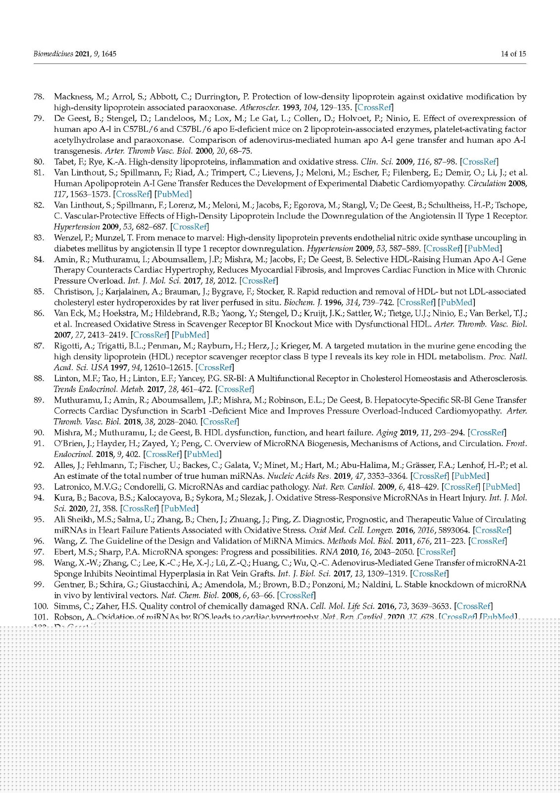 Gene transfer studies have provided strong corroborative evidence for a key role of oxidative stress in pathological cardiac hypertrophy and remodeling and in the development of heart failure. Since the heart is the metabolically most active organ and is characterized by the highest content of mitochondria of any tissue, this organ is very susceptible and vulnerable to oxidative stress. Oxidative stress not only causes protein oxidation, lipid peroxidation, and DNA damage but also oxidative changes of microRNAs [5,11]. The key pathogenetic role of oxidative changes of microRNAs has been unequivocally demonstrated [11].