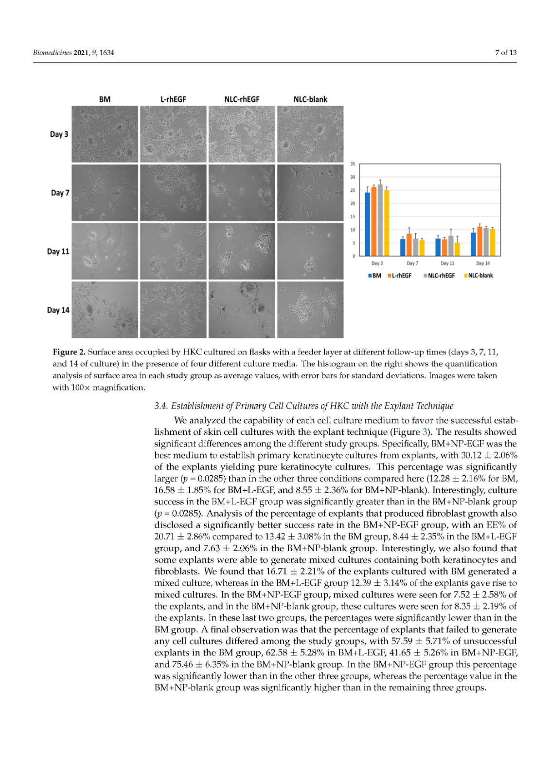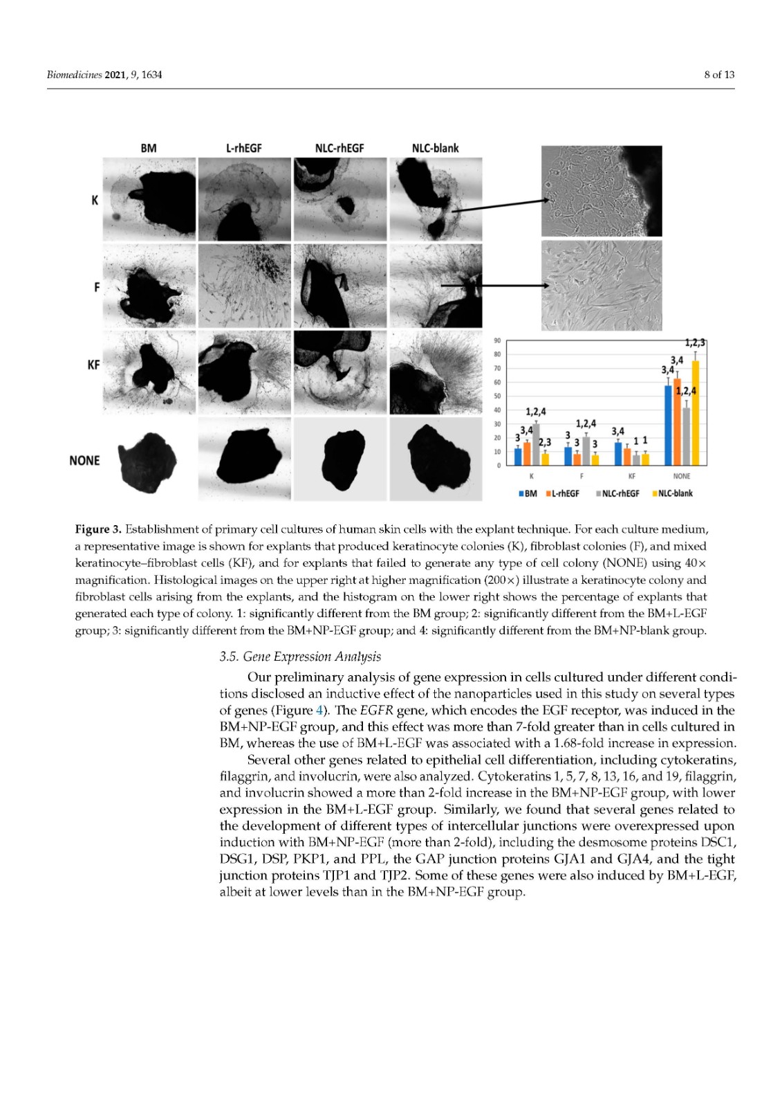 EGF, nanoparticles, NLC, keratinocytes, tissue engineering, cell culture
